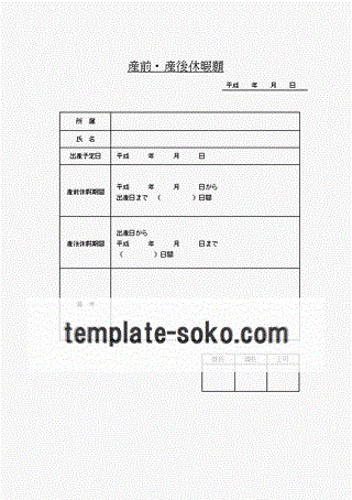 A4縦 産前・産後休暇願のテンプレートWordテンプレート無料ダウンロード |